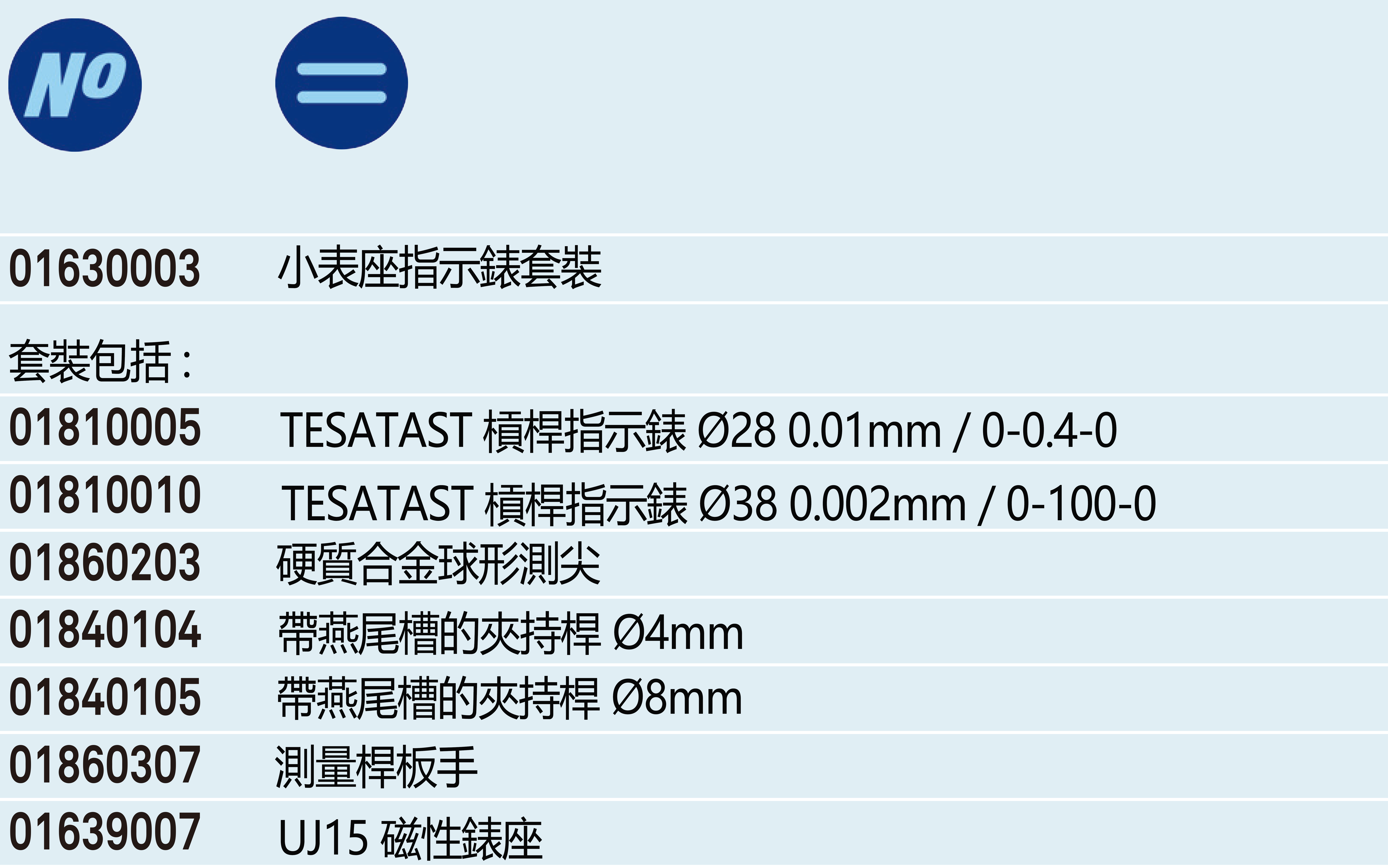 TESA槓桿指示錶 - 套裝小表座槓桿指示錶